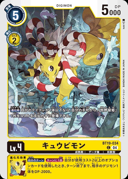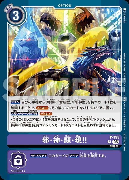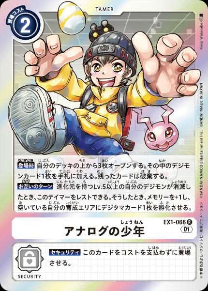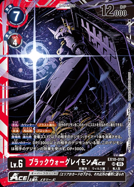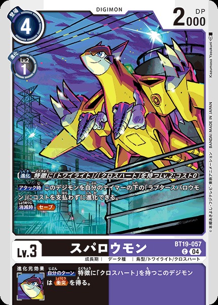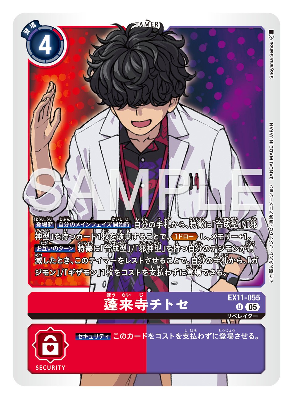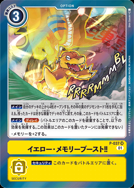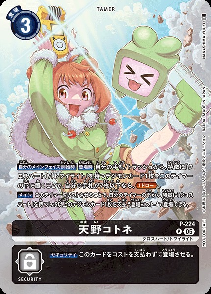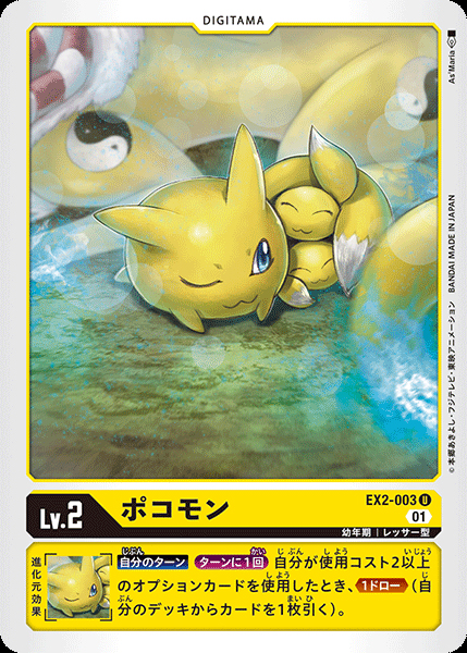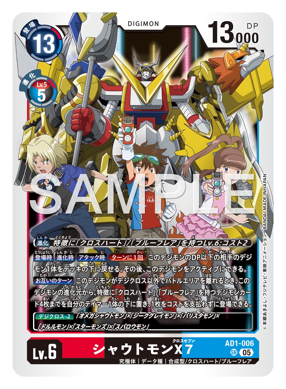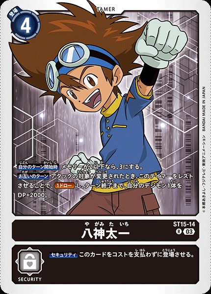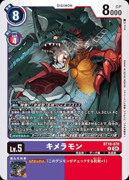 The synergy here is that any DigiXros with more than two components has the [Composite] trait, so when DM Millenniummon kills itself and gets to play "2 level 6 or lower Digimon with the [Composite] trait and different levels", you can play out a Kimeramon and a Shoutmon EX6/X7. In practice, the combination of boardwide De-Evolve with boardwide DP reduction proves extremely potent, and the pre-existing Kotone shenanigans performed in Standard are buffed considerably by the split memory gauge.
